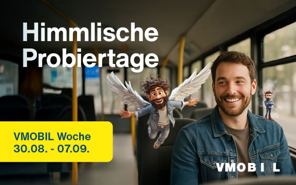 Die VMOBIL Woche lädt schon seit vielen Jahren die Menschen in Vorarlberg dazu ein, klimafreundliche Mobilitätsangebote auszuprobieren. Auch heuer können Bus, Bahn, Radboxen, Leihräder und Carsharing wieder zu super Konditionen ausgiebig getestet werden. Heuer lautet das Motto der VMOBIL Woche „Himmlische Probiertage“: Engelchen und Teufelchen symbolisieren dabei das bekannte Spiel der inneren Stimmen mit dem Ziel, alte Gewohnheiten zu durchbrechen, neue Mobilitätsangebote kennenzulernen und gleichzeitig etwas Gutes für sich und die Umwelt zu tun.