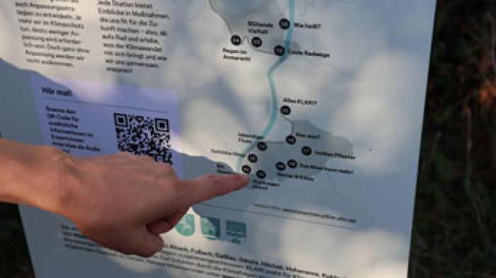 Auf der Fahrradtour, die 13 spannende Stationen umfasst, erkunden die Teilnehmer:innen die Auswirkungen des Klimawandels auf verschiedene Lebensräume und lernen bereits umgesetzte Anpassungsmaßnahmen kennen. Die Tour kann individuell abgefahren werden. An jeder Station informieren Tafeln über regionale klimatische Veränderungen und geben Einblicke in die Maßnahmen zur Klimawandelanpassung. Ergänzt werden die Informationen durch QR-Codes, die zu Expert:innenstatements und weiterführenden Inhalten auf der KLAR! am Rhein-Website führen.