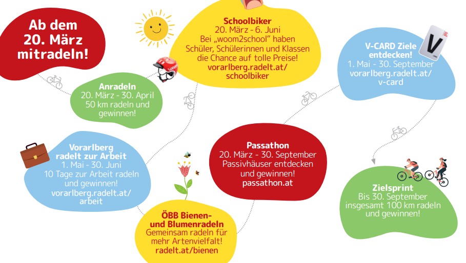 - Vorarlberg radelt zur Arbeit (01.05.–30.06.): Radle an 10 Tagen in die Arbeit!